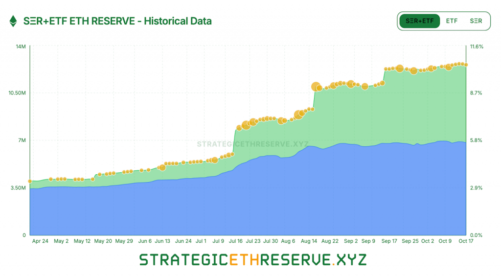 Динаміка зростання стратегічного Ethereum-резерву. Джерело: Strategic ETH Reserve.