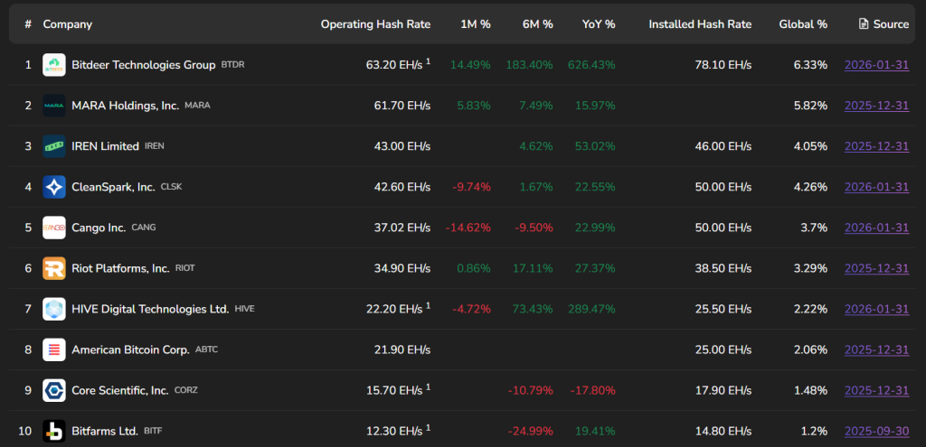 Станом на час написання American Bitcoin входить до десятки найбільших гравців галузі, посідаючи восьме місце у глобальному рейтингу публічних майнінгових компаній.
