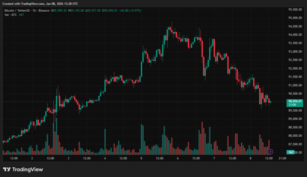 На момент написання біткоїн торгується поблизу $90 000. За останню добу ціна активу знизилася на 2,3%.