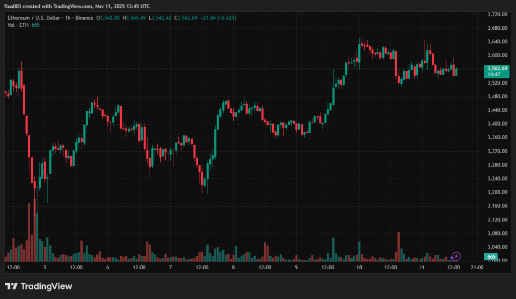 На момент публікації ETH торгується по $3560. За останню добу її ціна знизилася на 1,4%.