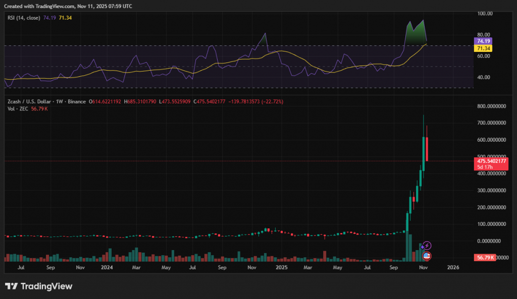 Тижневий графік ZEC/USD біржі Binance. Джерело: TradingView