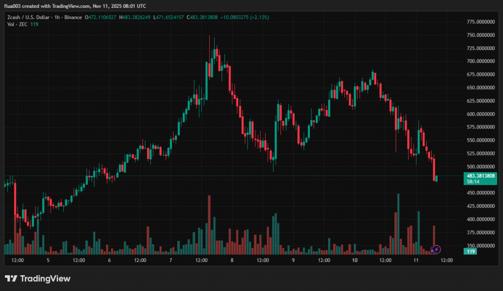 Годинний графік ZEC/USDT біржі Binance. Джерело: TradingView