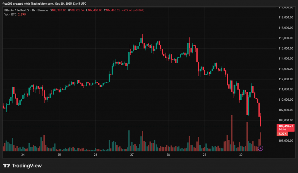 На момент написання ціна першої криптовалюти становить близько $108 400.