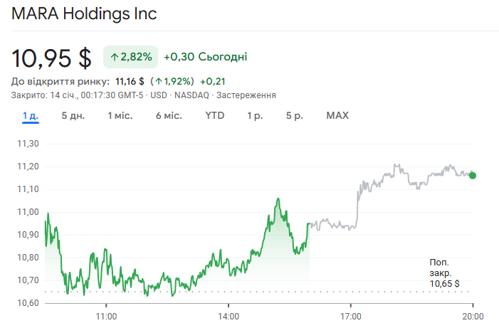 Папери MARA піднялися на 2%, досягнувши позначки $10,93.