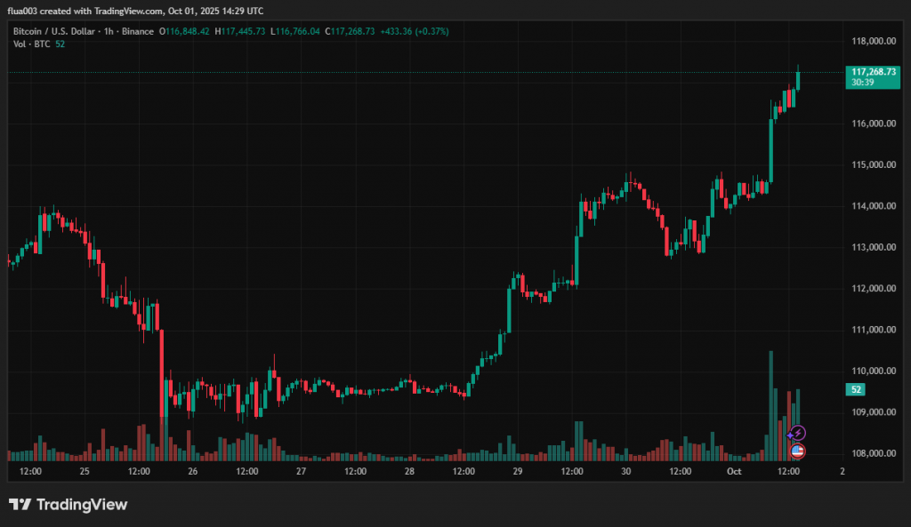 За останню добу біткоїн подорожчав на 3,5% і наразі торгується близько $117 250.