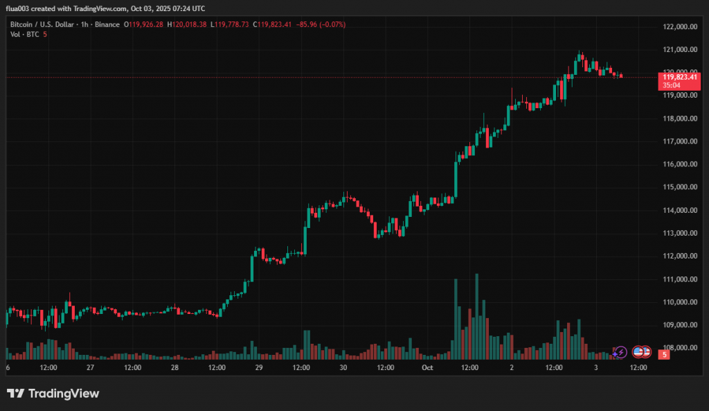 Станом на час написання біткоїн торгується близько $120 000, демонструючи зростання на 1,3% за добу.