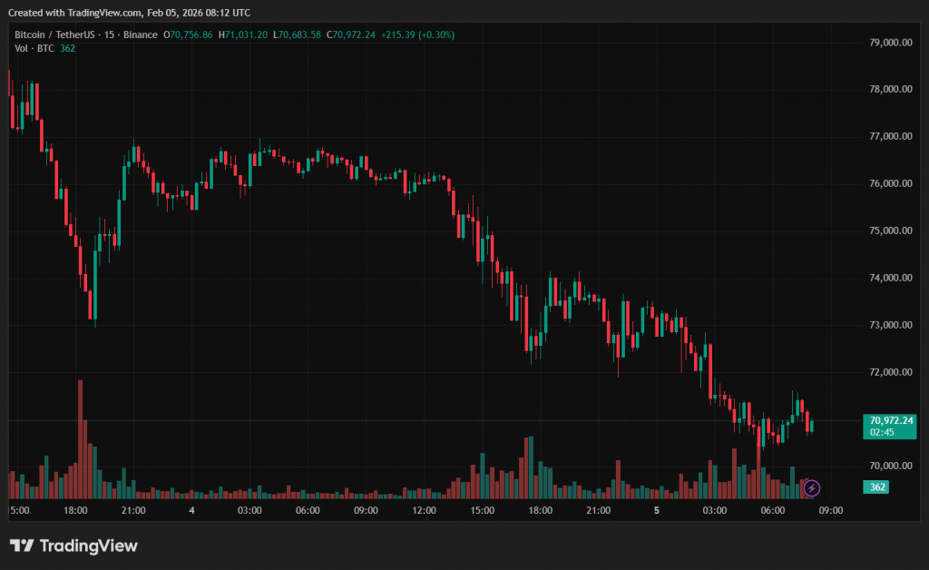 5 лютого котирування біткоїна опустилися до $70 119 — мінімуму з жовтня 2024 року. Ethereum пішов за флагманом, просівши до $2079.