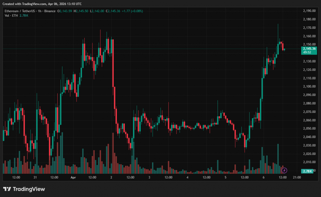 Ціна Ethereum зросла на 5,5% — до $2150.