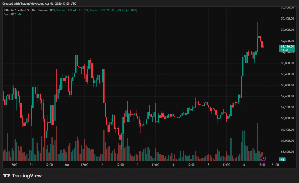 6 квітня котирування першої криптовалюти зросли на 4%, протестувавши рівень $70 000. Позитивна динаміка на ринку пов’язана з ознаками можливої деескалації війни в Ірані.