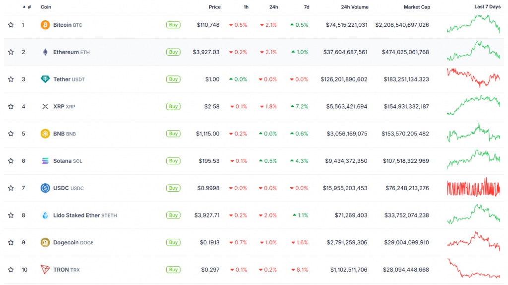 Інші активи з топ-10 за капіталізацією також перейшли в «червону зону»: TRX впав на 11% за добу, DOGE — на 3,7%.