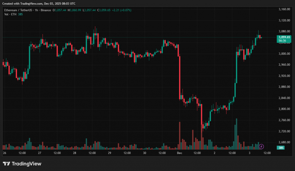 Курс Ethereum повернувся до $3000, додавши 9,7%.