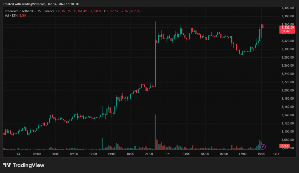 На тлі інституційної активності ціна другої за капіталізацією криптовалюти зросла на 5,5% за добу — до $3350.