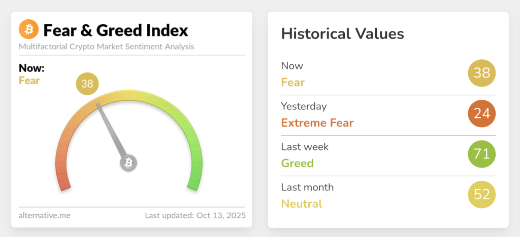 Індекс страху та жадібності крипторинку знизився до 24 пунктів, сигналізуючи про «екстремальний страх». Нині показник відновився до 38.