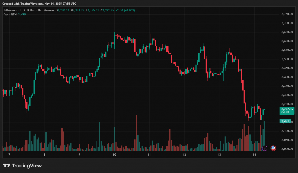 Перша криптовалюта потягнула за собою весь ринок. Ціна Ethereum знизилася на 10,4% — до ~$3200.