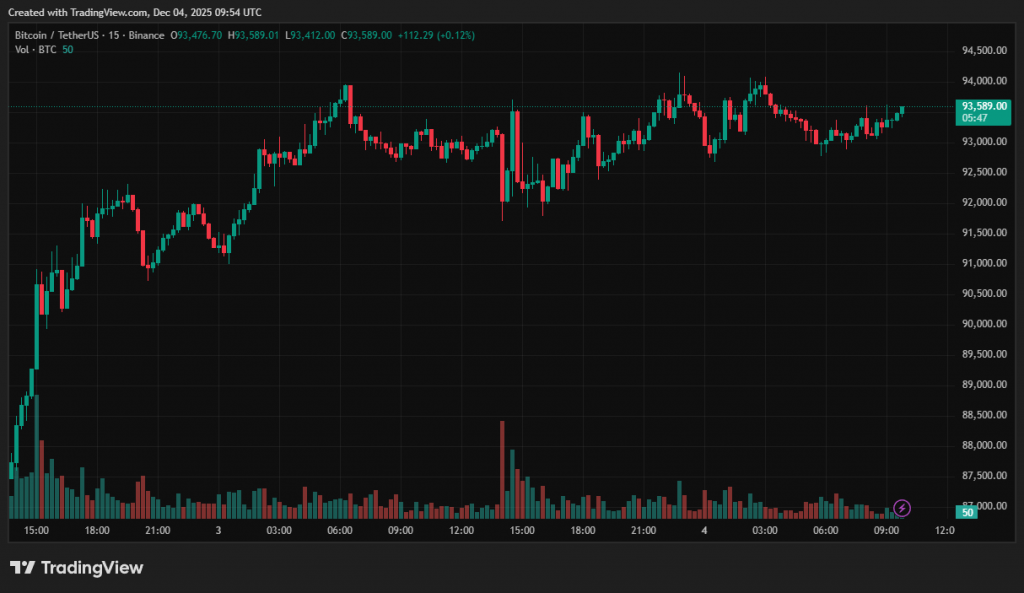 На момент написання біткоїн торгується близько $93 100. За добу актив додав 0,3%, за тиждень — 2%.