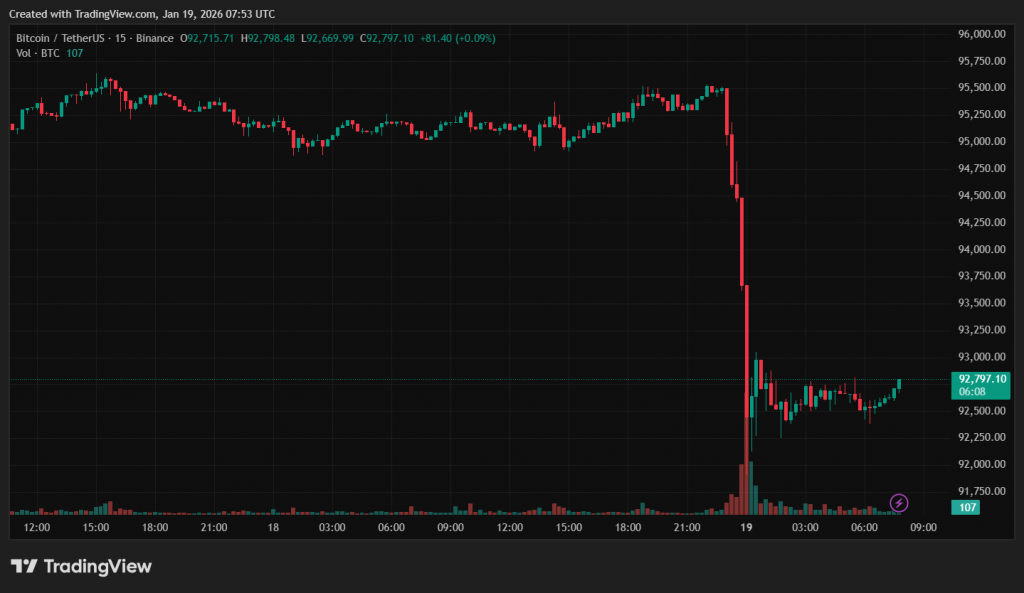 19 січня курс біткоїна знизився з $95 467 до $92 263 (−3,3%). Слідом у «червону зону» перейшли провідні альткоїни.