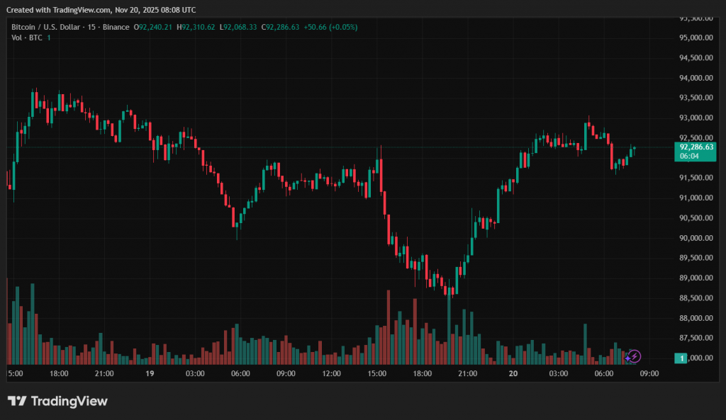 На момент публікації біткоїн торгується поблизу $92 300.
