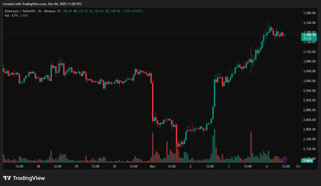 Курс другої за капіталізацією криптовалюти відреагував на апгрейд зростанням на 3,6% за добу. На момент написання актив торгується близько $3200.