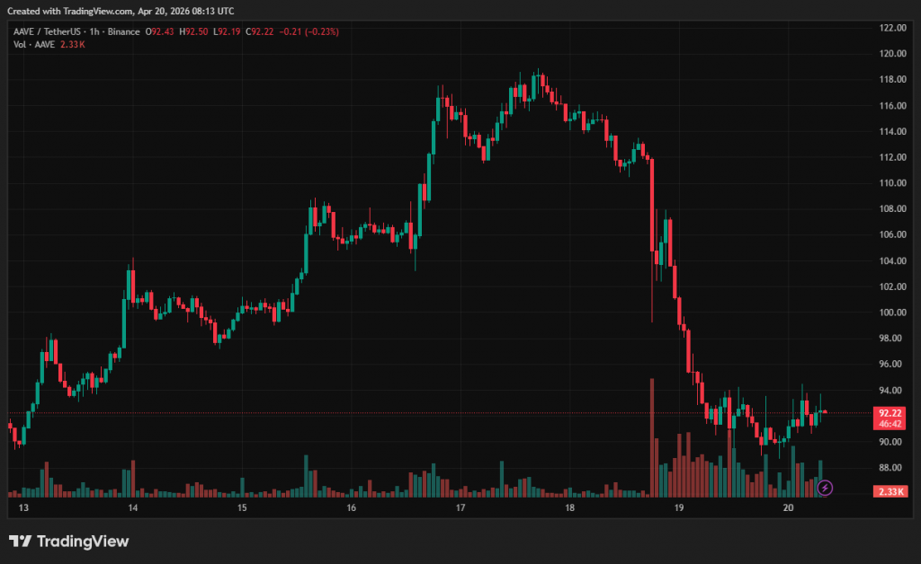Ціна токена AAVE впала більш ніж на 15% — до $91. Капіталізація активу знизилася з $1,8 млрд до $1,3 млрд.