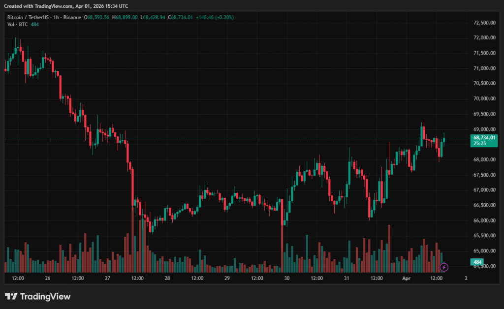 На момент написання «цифрове золото» торгується поблизу $68 600. Перший квартал 2026 року, що завершився напередодні, став для активу найгіршим за останні вісім років.