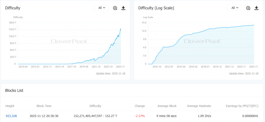 Структурна трансформація вже відбивається на показниках майнінгу. Складність на історичних максимумах. Під час останнього перерахунку показник сягнув 152,27 T.