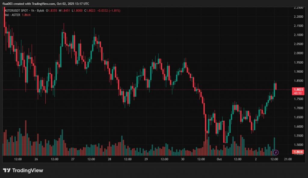 17 вересня Aster запустила власний токен. З того часу його ціна зросла більш ніж на 1600% — з $0,09 до $1,8 при FDV у $14 млрд.