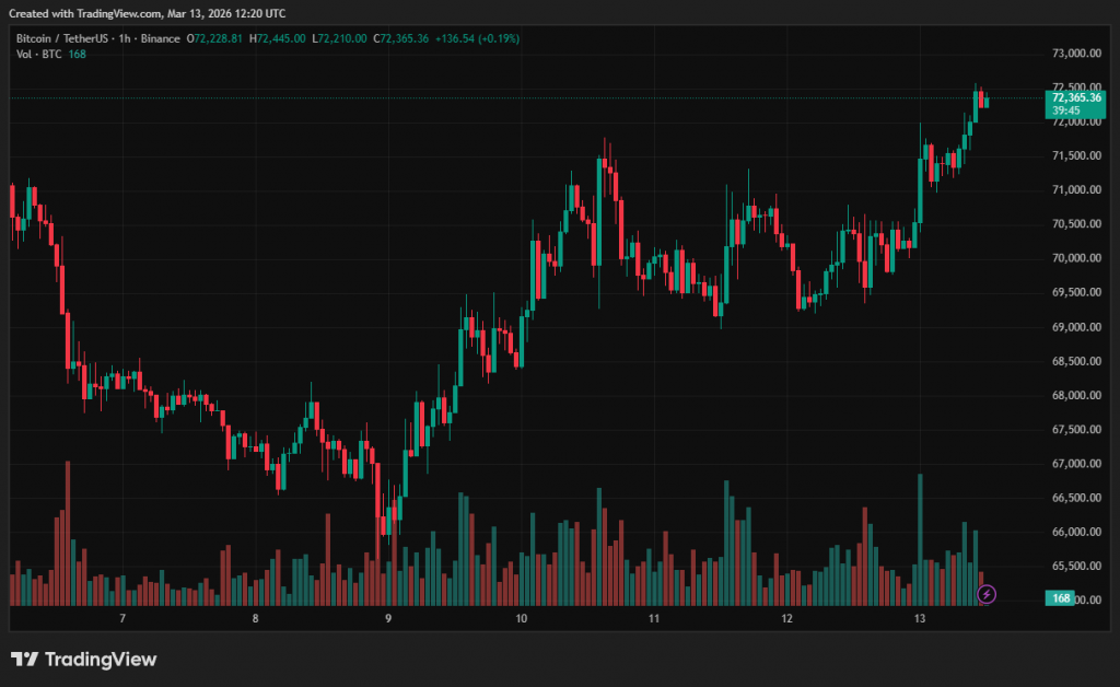 На момент написання перша криптовалюта торгується близько $72 300. За останню добу її ціна підскочила на 2,7%.