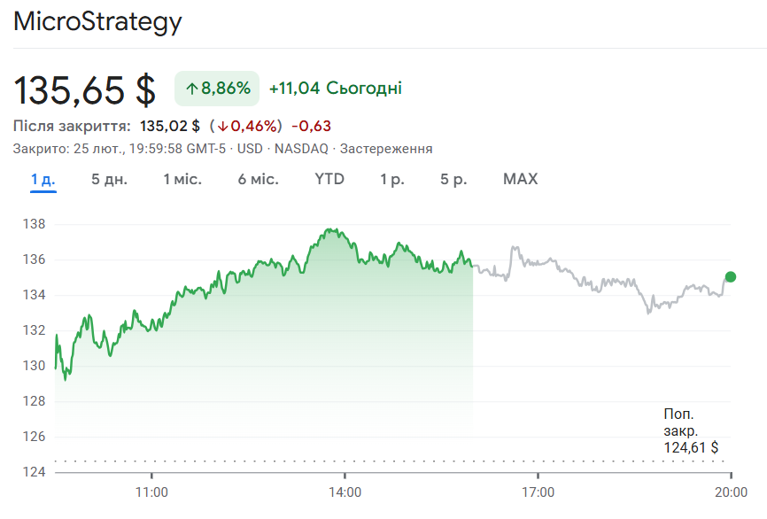 Падіння біткоїна майже на 50% від історичних максимумів зламало цей механізм. За останні пів року акції Strategy обвалилися на 61,39%. На момент написання папери торгуються по $135,65 — нижче вартості криптовалютних резервів у перерахунку на одну акцію.