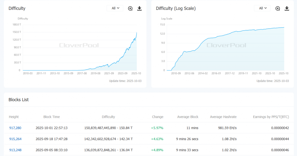 1 жовтня після чергового перерахунку складність видобутку біткоїна досягла 150,8 Т. Показник збільшився на 5,97%, оновивши історичний максимум.