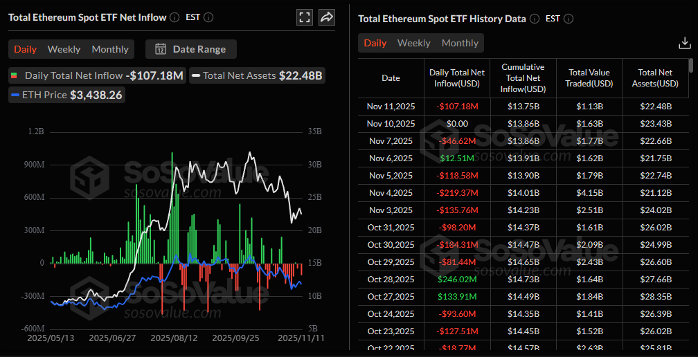 ETF на базі Ethereum зафіксували відтоки $107 млн. ETH від Grayscale втратив $75 млн, а ETHA від BlackRock — $19 млн.