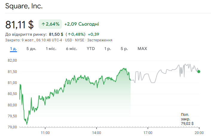 На тлі новини акції Block зросли на 2,5% — до $81, що стало найвищим показником із лютого.