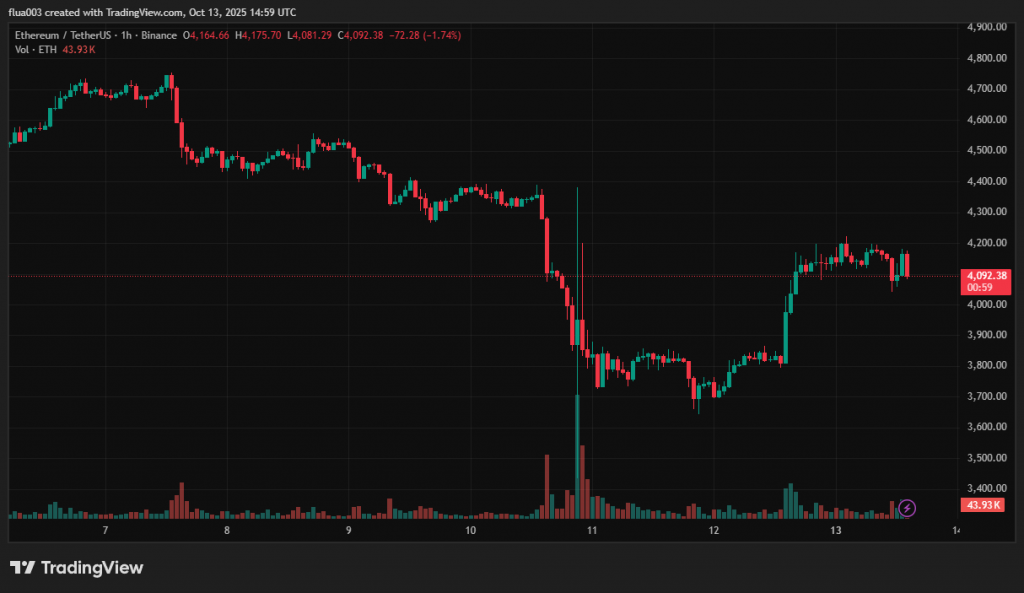 На момент публікації криптовалюта торгується близько $4107, тоді як раніше ціна знижувалася до $3700.