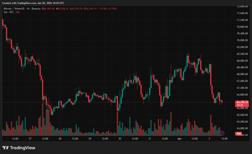 За останню добу ціна біткоїна опустилася на 3%. На момент написання перша криптовалюта торгується близько $66 400.