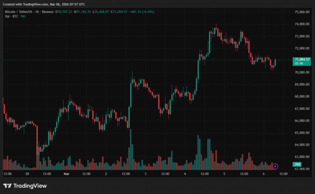 На момент написання «цифрове золото» торгується поблизу $71 000. За добу актив подешевшав на 2,7%.