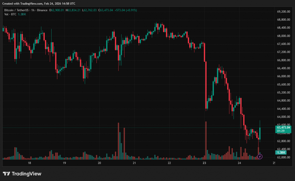 На момент написання біткоїн торгується близько $63 473, подешевшавши на ~5% за останню добу.