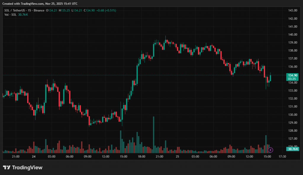 15-хвилинний графік SOL/USDT біржі Binance. Джерело: TradingView.