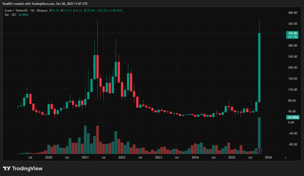 Місячний графік ZEC/USDT біржі Binance. Джерело: TradingView.
